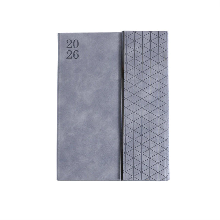 The GeoGraphite 2026 Elite Diary redefines modern minimalism with its unique geometric embossed design and refined matte grey finish. Crafted from premium PU leather, it offers a luxurious feel with lasting durability. The 18.5 × 25.0 cm format provides generous writing space for daily planning, meeting notes, and goal tracking. Its clean layout and stylish texture make it a perfect companion for executives and professionals. Ideal for corporate gifting or personal organization throughout the year 2026.
